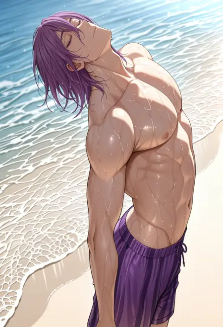 AKNBAtsushi, 1boy, male focus, purple hair, purple eyes, hair between eyes
