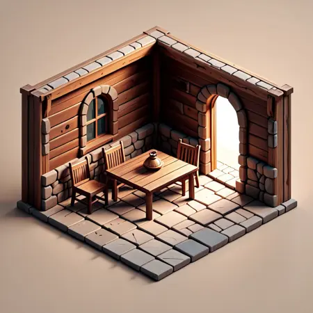 solo_asset→ ネイティブな背景に単体の家具(テーブル、椅子、ベッド…)を生成。GIMP/Photoshopでの切り抜きに最適です。placed in interior→ RPGのシェル内に直接家具を配置し、迅速なプロトタイピングを可能にします。