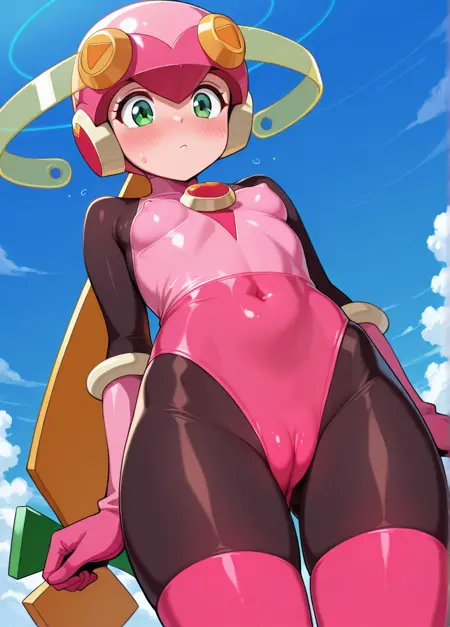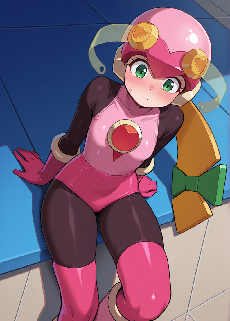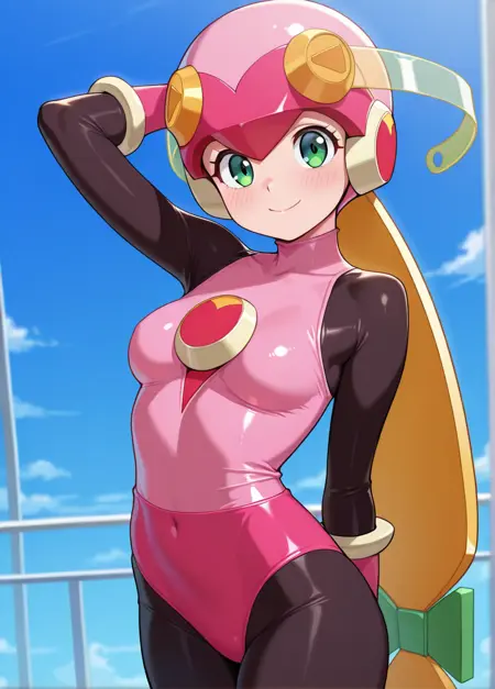 rollxd, 1girl, green eyes, blonde hair, long hair, helmet