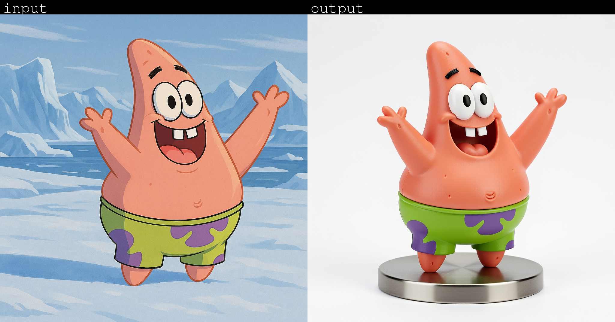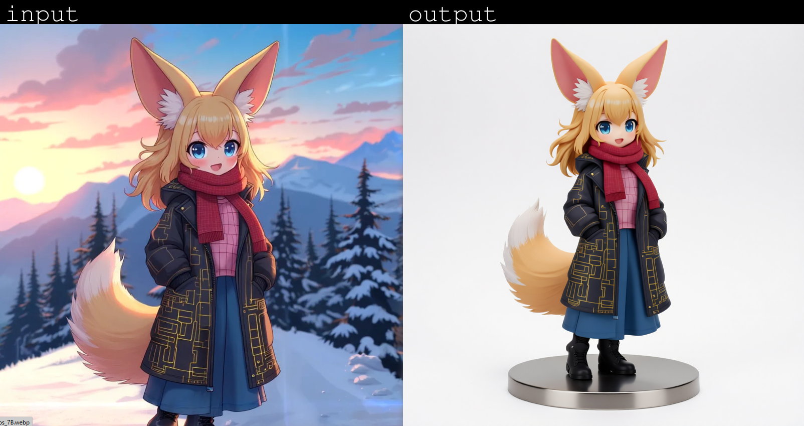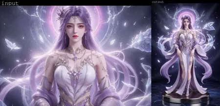 권장 프롬프트 단어: 이 사진의 주제를 기반으로 3D PVC 모형 피규어를 생성해 주세요. 사진 속 주제의 피규어 모형을 제가 제공한 원형 금속 베이스 위에 놓고, 모형의 각도를 조정하세요. 배경은 흰색으로 하고 캐릭터의 자세는 변경하지 마세요. 부조인 경우 최종 제품은 전신 모델이어야 합니다.
