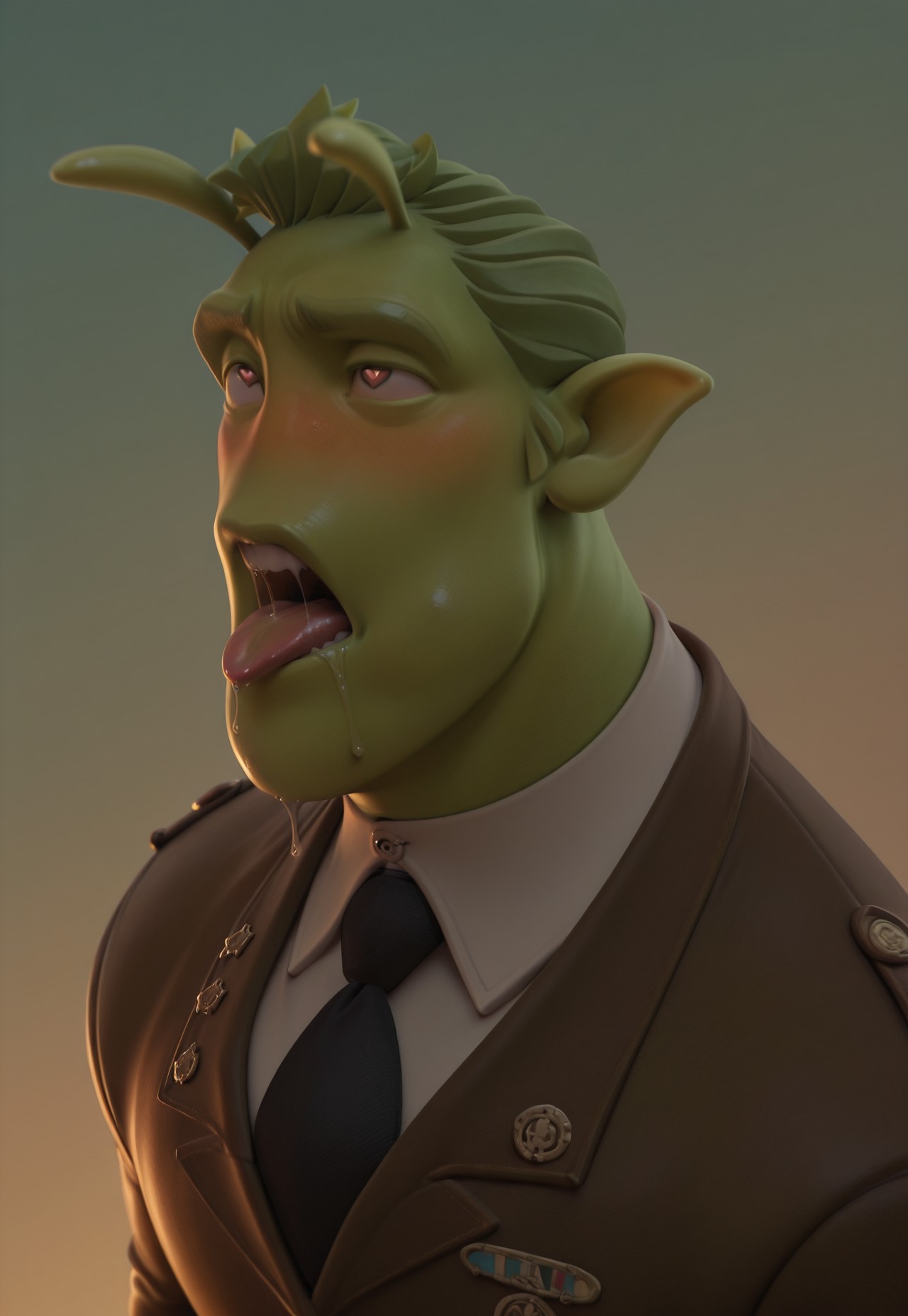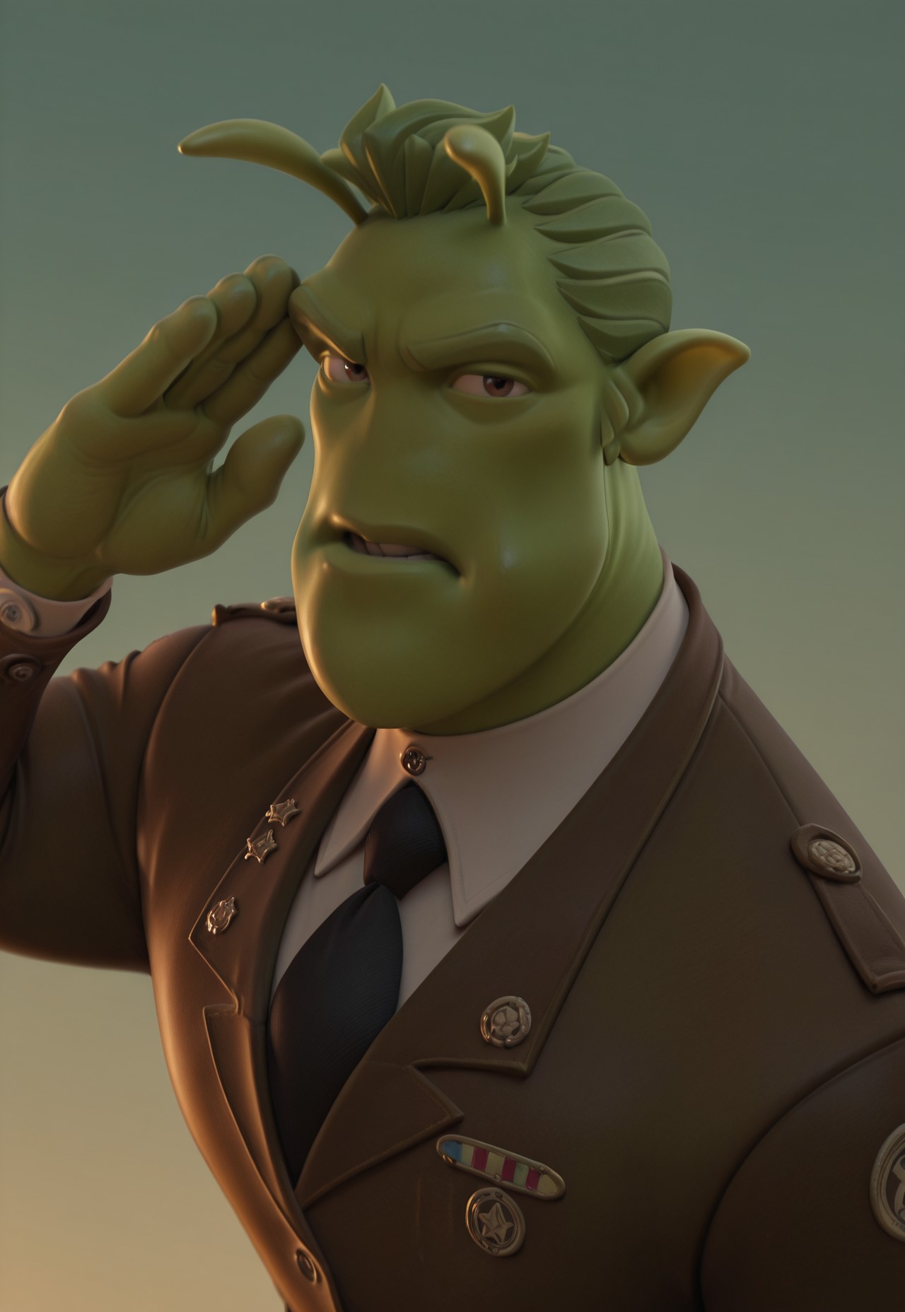 gr4wn, green alien, brown eyes, green hair, short hair tentacles, head antenna