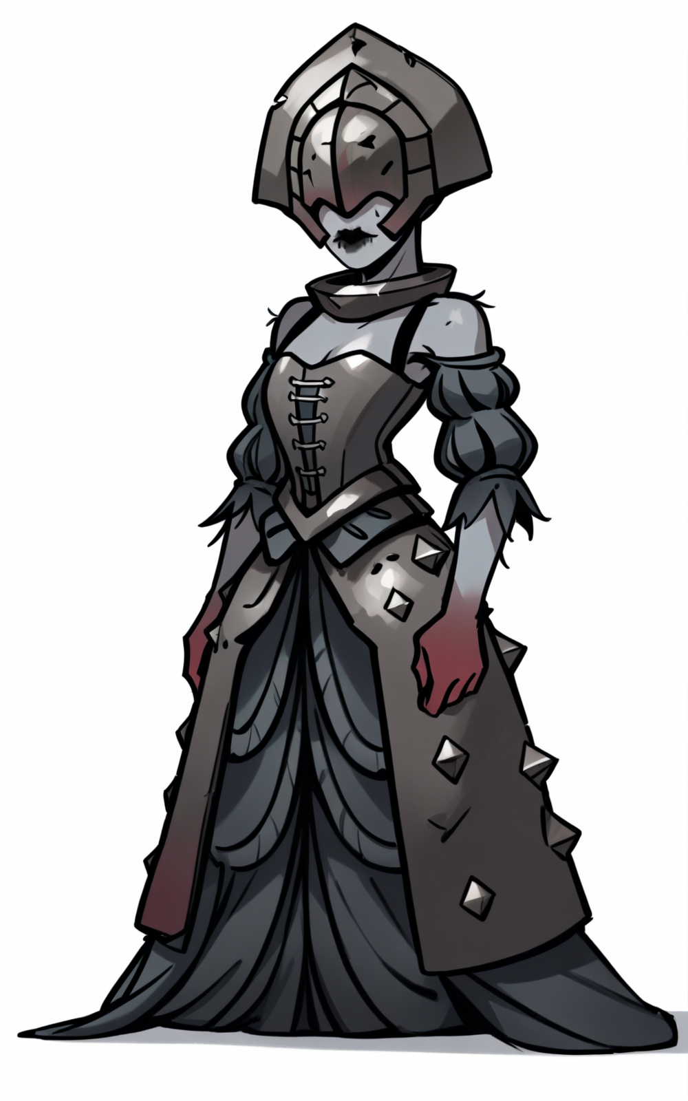 强化标签: 头盔、遮盖双眼、灰色头盔、灰皮肤、黑嘴唇、无鼻子