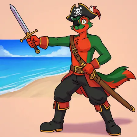 wolf, 1boy, solo, male, adult, two-tone fur, yellow eyes, green fur, red_fur,