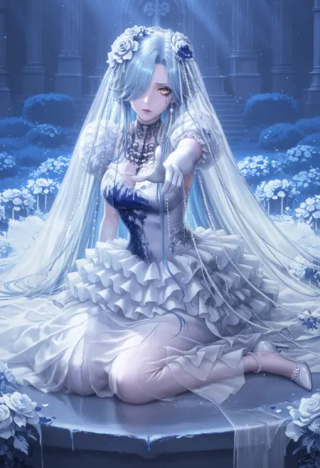 **Optional clothing tags 衣服 :**yifuGrave,Grave sanklet,Grave bridal veil,Grave white elbow gloves,frills,Grave blue and white hair flower,Grave hair ornament,Grave white high heels,Grave jewelry,pearl (gemstone),Grave puffy short sleeves,Grave see-through,Grave silver dress,Grave wedding dress,Grave white dress,Grave blue print,