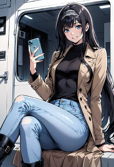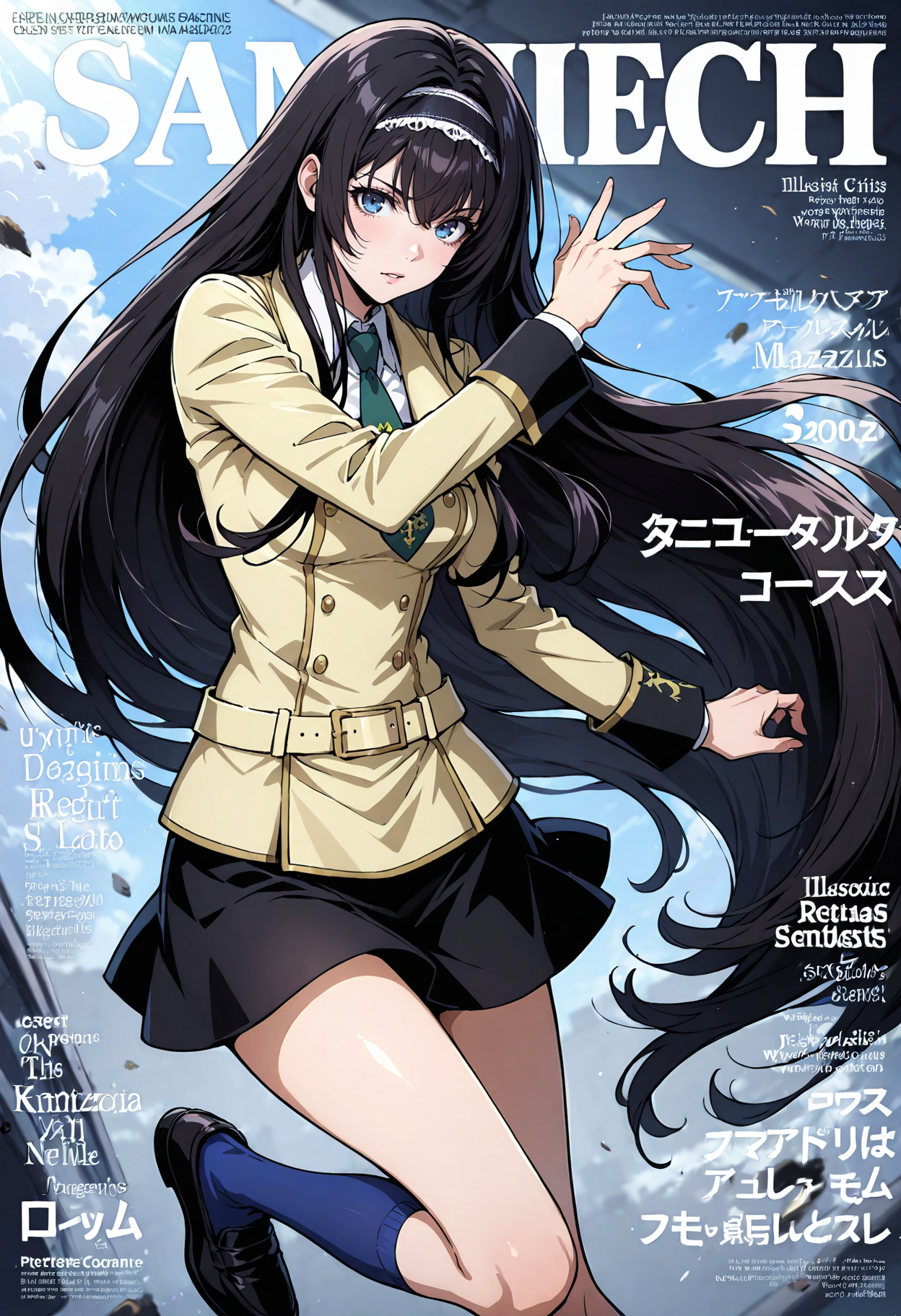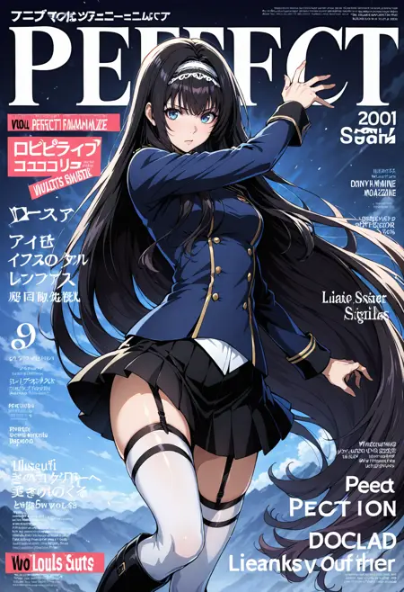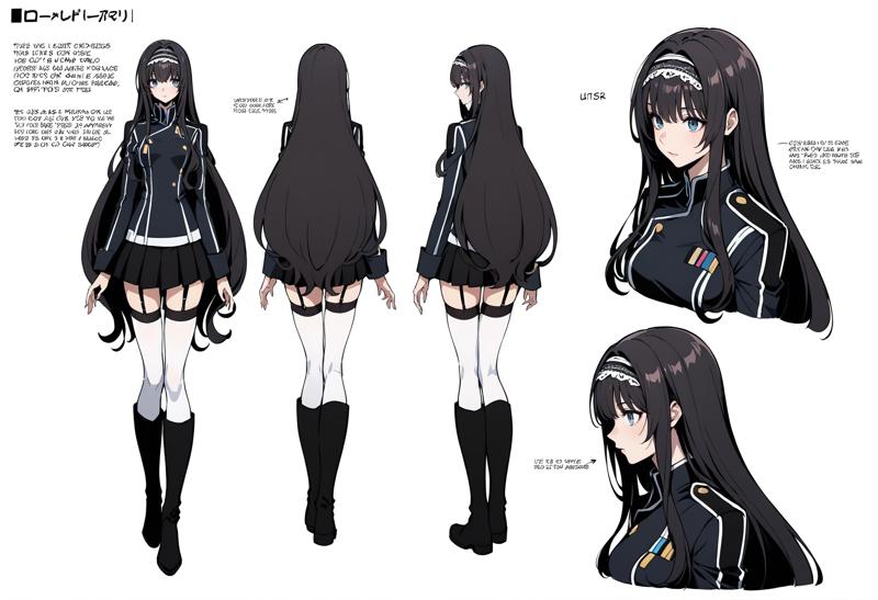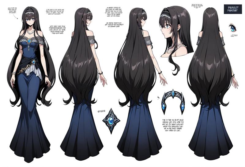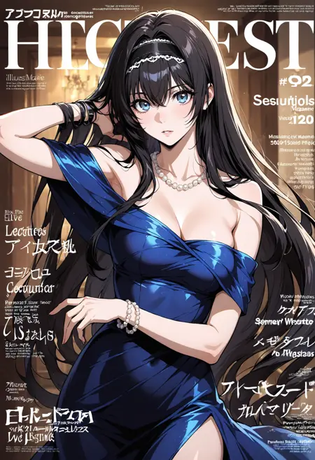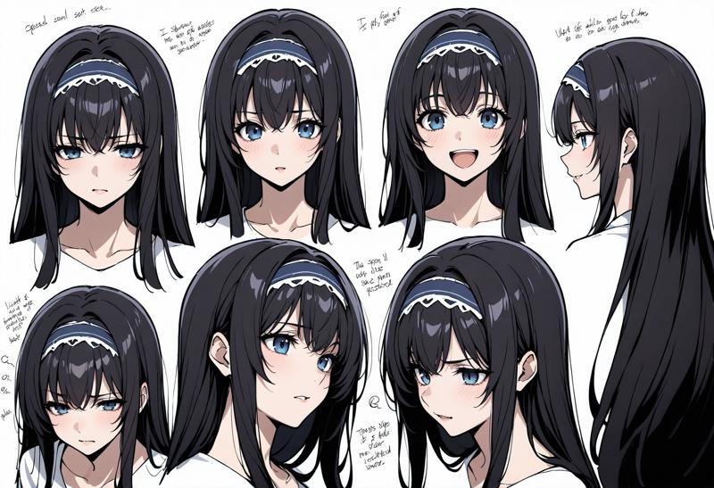 Appearance: 1girl,blue eyes,black hair, long hair,very long hair,hairband