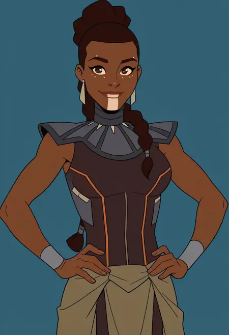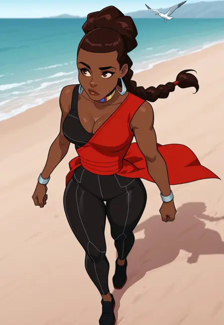 | Trained Words | 2d, 1girl, solo, Shuri, dark-skinned female, ebony female, brown eyes, brown hair, long hair, single braid, silver earrings, rectangle dangle earrings, dark lips,Copied! ,Wakandan_Armor, white facial markings, neck armor, sleeveless, dark blue bodysuit, silver armor, orange trim, silver bracers, beige sarong,Copied! ,Casual_Shuri, black bodysuit, grey trim, sleeveless, tank top, choker, cleavage, one-shoulder labcoat, red labcoat, silver bracelets, black shoes, red trim shoes,Copied! |