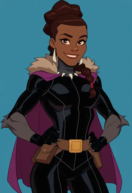 | 학습된 단어 | 2d, 1girl, solo, Shuri, dark-skinned female, ebony female, brown eyes, brown hair, long hair, single braid, silver earrings, rectangle dangle earrings, dark lips,복사됨! ,Wakandan_Armor, white facial markings, neck armor, sleeveless, dark blue bodysuit, silver armor, orange trim, silver bracers, beige sarong,복사됨! ,Casual_Shuri, black bodysuit, grey trim, sleeveless, tank top, choker, cleavage, one-shoulder labcoat, red labcoat, silver bracelets, black shoes, red trim shoes,복사됨! |