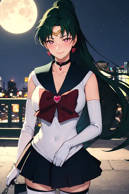 标签:SetsunaMeiou,(水手冥王星,水手领饰,长发,深绿色头发,肘部手套,颈带,发圈,珠宝,白色过膝袜,马尾)