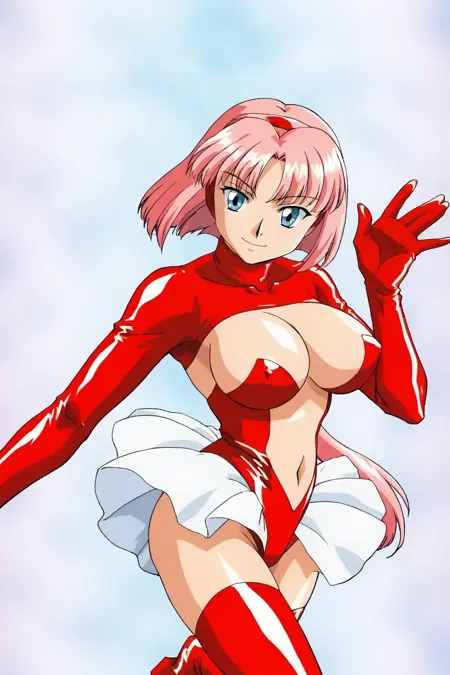 (ViperGTBAquarianC:1.2), breasts, large breasts, red latex headgear, red latex knee boots, white tutu, red latex plunging neckline open leotard, red latex turtleneck shrug with gloves,