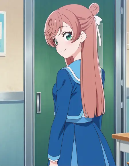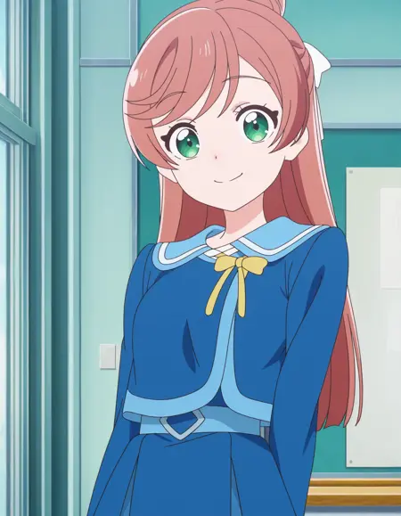 动漫截图,单人,1女孩,nijigaokamashiro,mashiroschool,校服,lora:nijigaokamashiro_IL:0.8 高清晰度,卓越画质,最佳画质,非常唯美,杰作,absurdres,