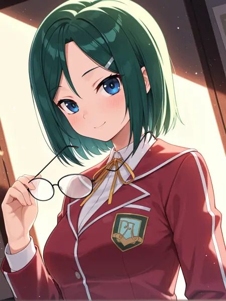 태그 (캐릭터 12 - 하세베 하루카, 長谷部遥): 하세베 하루카, 둥근 안경, 머리 끈