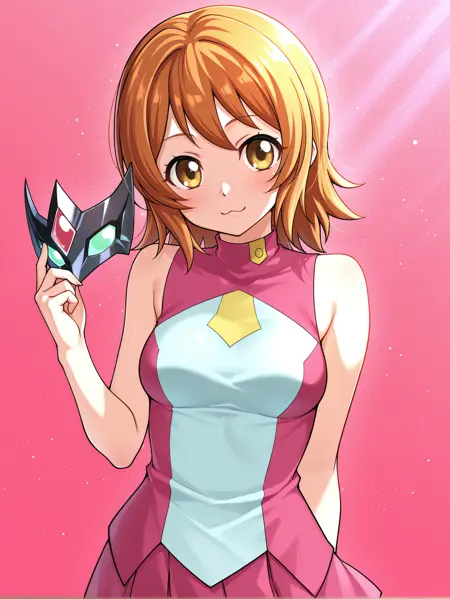태그 (의상 - 3): 듀얼 아카데미 유니폼 (Yu-Gi-Oh! ARC-V), 다색 민소매 셔츠, 분홍 치마