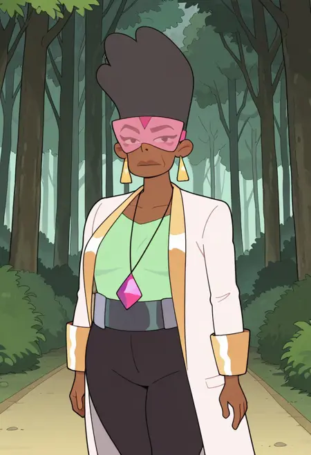 기본 프롬프트: Dr. Lullah, 노인, 키가 크고, 검은 피부를 가진 여성, 회색 머리, 크리스털 목걸이, 분홍색 톤의 안경,