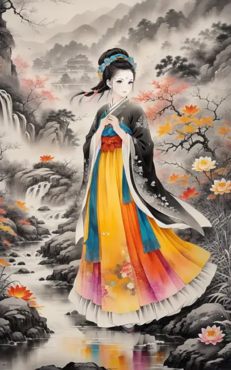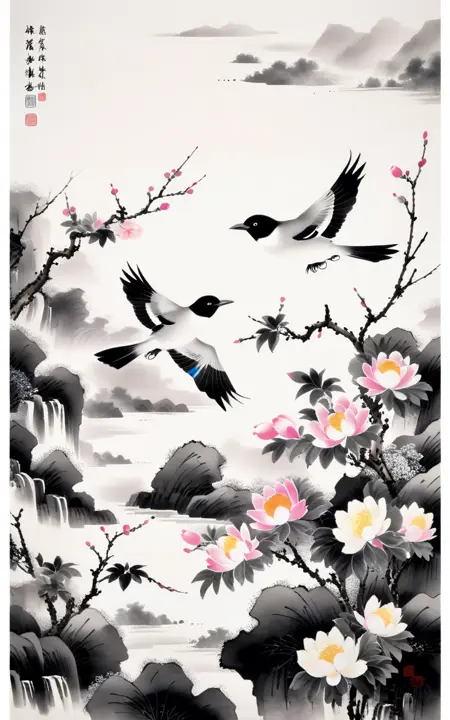 スタイルトリガーキーワード(一部の場合、明示的に書かなくても効果が現れます。関連キーワードが多いほど効果が向上):traditional chinese ink painting, black and white ink painting