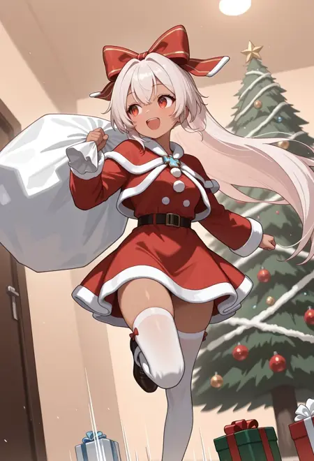 由于数据集主要聚焦于默认服装,因此茶熊服装和婚纱的还原度较低。但此LoRA具有极高的灵活性,以下为经过测试的4套自定义服装。