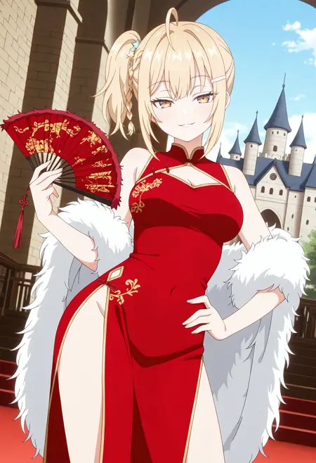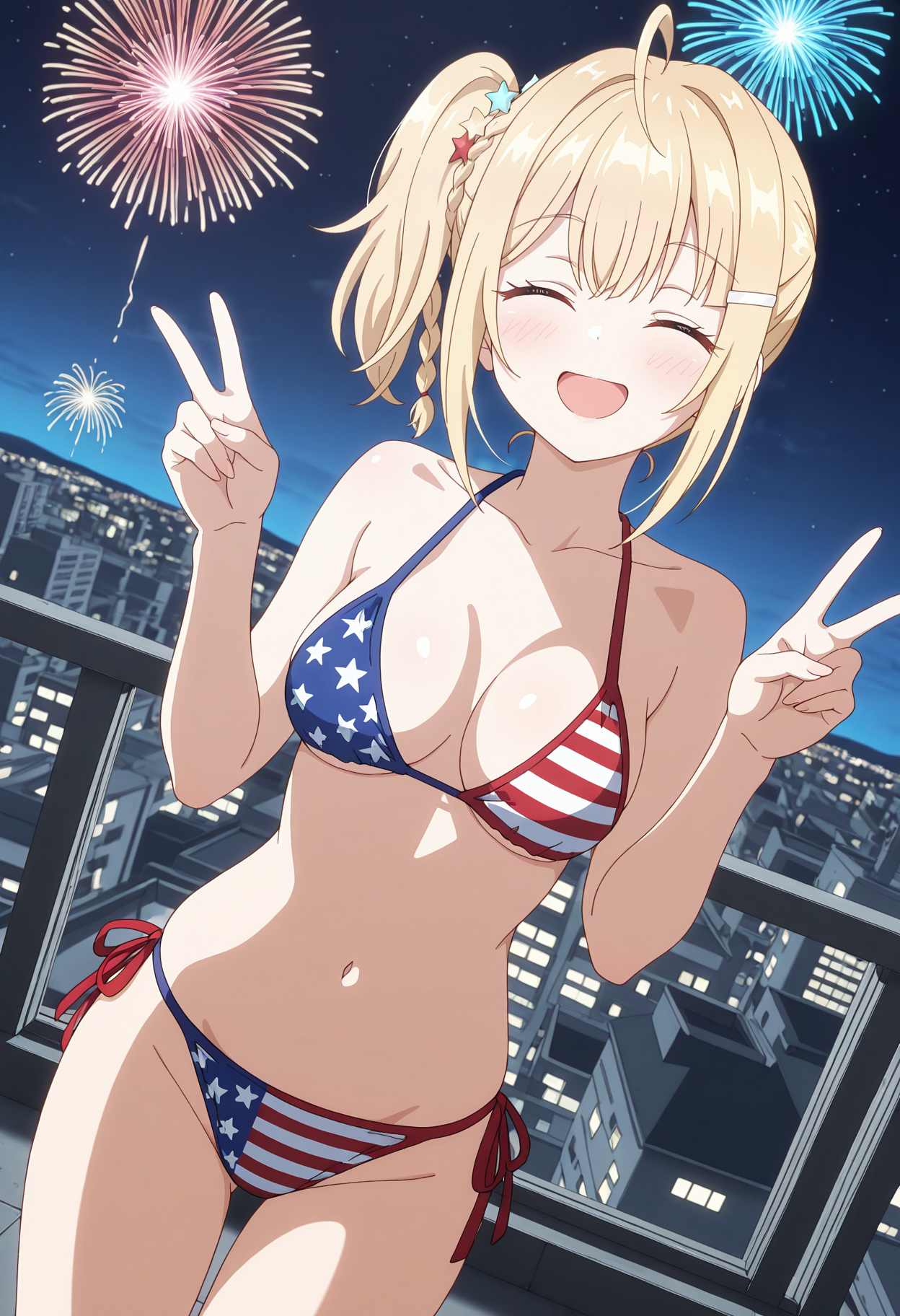 KJOnonoa, blonde hair, yellow eyes, ahoge, single braid, side ponytail, hair star ornament, white hairclip,