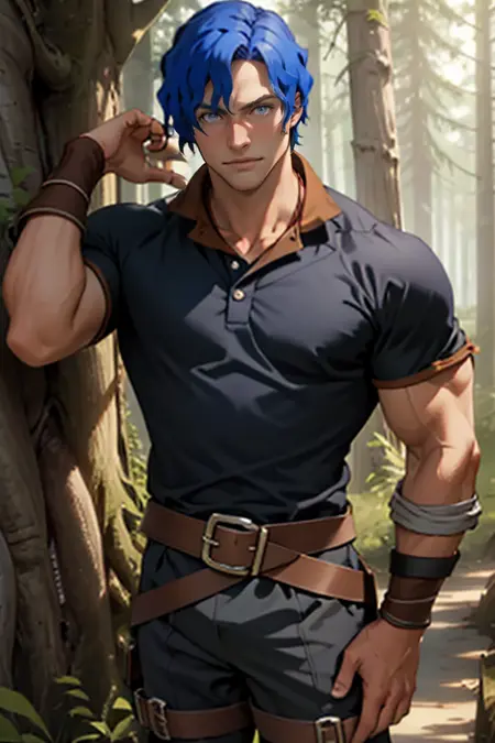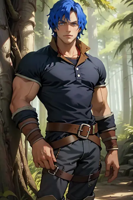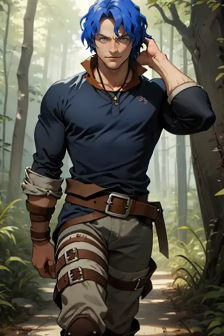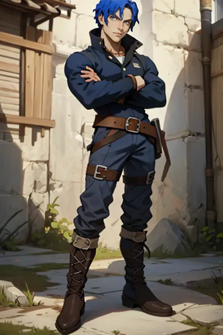 タグ: Brain_Unglaus_Overlord, シングル, 青い目, 1人男の子, 青い髪, 男性中心, ブーツ, ベルト, 筋肉質, 波状の髪, 筋肉質な男性