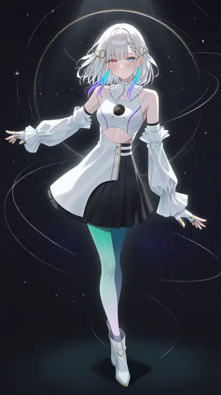 | 训练词汇 | IsekaijouchoNemophilia, long hair, white hair, straight hair, hair over one eye, blue hair highlights, blue hair flower, grey eyes, chest cut-out, crop jacket, white jacket, high collar, puffed upper sleeves, wide sleeves, buttoned sleeves, gradient blue dress, white dress, patterned dress, white leggings, buttoned brown boots, metallic ornaments, circles chest decorations, circle upper sleeves decorations, 已复制! IsekaijouchoMargaretSol, long hair, white hair, yellow hair highlights, bangs, hair over one eye, grey eyes, yellow hair flowers, yellow chestpiece, white corset, purple tassel, halter neck dress, detached sleeves, patterned long sleeves, frilled sleeves, white gloves, frilled white dress, layered dress, gradient white dress, black waist cloth, patterned leggings, yellow leggings, white heels, ankle ribbons, black patterns, 已复制! IsekaijouchoMargaretLuna, long hair, white hair, bangs, hair over one eye, blue hair highlights, grey eyes, hair ornament, collared crop jacket, thin jacket, long sleeves, chest buttons, blue necktie, one-piece undersuit, connected shorts, patterned undersuit, black leggings, ribbon-decorated footwear, black footwear, white ribbon back attachment, large back attachment, 已复制! IsekaijouchoSeventhHeaven, medium hair, white hair, blunt bangs, gradient hair highlights, heterochromia, blue eye, red eye, braid, interlocking rings hair ornament, white frilled collar, sleeveless crop top, white strapped top, black chest circle, chest cut-out, white detached sleeves, frilled outer sleeves, black pleated skirt, white skirt overlay, gradient mint leggings, fingerless white inner sleeves, (finger loop gloves), gold rings, heeled boots, white ankle boots, 已复制! IsekaijouchoSunflower, long hair, white hair, bangs, hair over one eye, yellow hair highlights, grey eyes, sunflower hair ornament, white crop jacket, long sleeves, teal inner sleeves, high collar, wide sleeves, two-tone dress, white and yellow dress, layered dress, teal inner dress, black leggings, white boots, ankle fit boots, heeled boots, gold-trimmed boots, triangle chest ornaments, metallic chest ornaments, 已复制! |