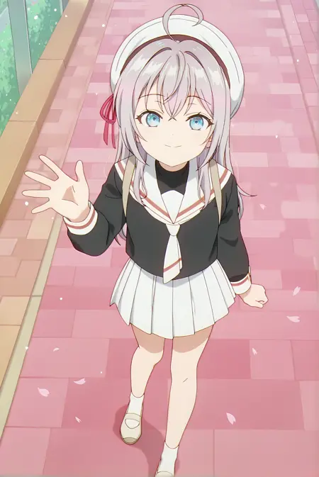 服装:tomoeda-sch,t_白色贝雷帽,t_黑色水手服,t_黑色高领衫,t_白色领子,t_红色镶边,t_白色领带,t_长袖,t_白色裙子,t_百褶裙,t_袜子,t_鞋子