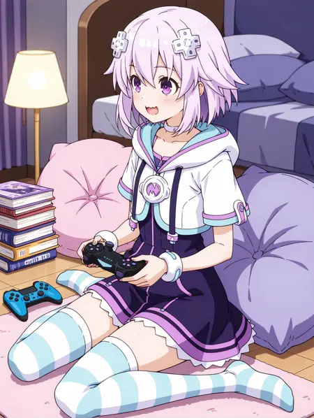 触发词:n_nep, d-pad 发饰, 紫色眼睛, 紫色头发, 短发,