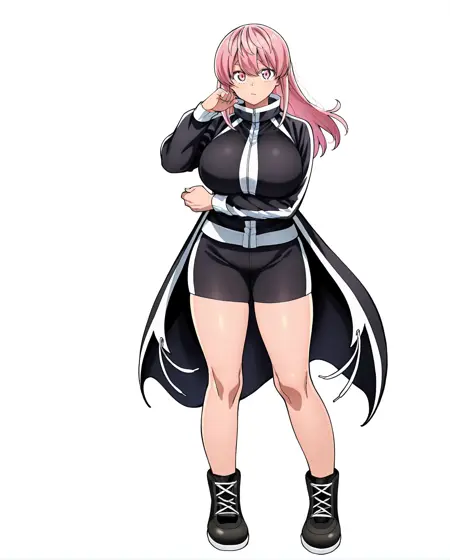 1girl, solo, pink hair, jacket, long hair, pink eyes,