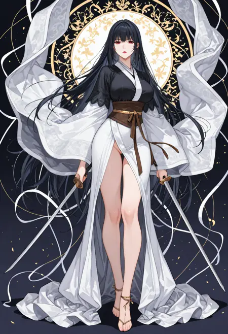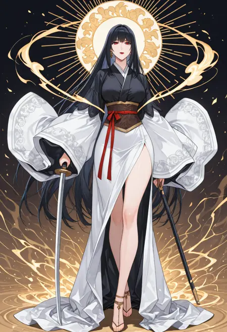| 训练词汇 | 1girl, solo, mature female, wolharang, black hair, very long hair, braid, side braid, long_bangs, blunt bangs, long sidelocks, hair ribbon, hair bow, tied hair, updo, sharp eyes, long eyelashes, red lipstick, huge breasts, curvy, narrow_waist, wide hips, thick_thighs已复制! 1girl, solo, mature female, wolharang, black hair, very long hair, long_bangs, blunt bangs, long sidelocks, hair down, white floral crown, sharp eyes, long eyelashes, red lipstick, huge breasts, curvy, narrow_waist, wide hips, thick_thighs已复制! layered kimono, black outer shirt, white inner dress, white trimming, long sleeves, wide sleeves, red belt guard, yellow waist sash, gold trimming, slit dress, long dress, embroidered sleeve已复制! green kimono, short kimono, yukata, floral pattern, green dress, blue sash, white flower crown, flower ornament, loose sleeves已复制! white dress, cleavage_cutout, collarbone, loose sash, loose dress, one side off shoulder, white trimming, long sleeves, wide sleeves, (white waist sash, loosen waist sash:1.2), slit dress, long dress, embroidered sleeve已复制! floral leg ornament, vine wrapping legs, barefoot已复制! traditional footwear, socks, anklet ribbon已复制! |