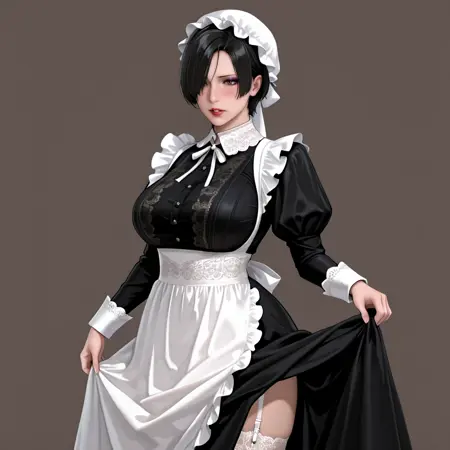 触发词:AdaResidentEvilMovie, 1girl, 短发, 项圈, 黑发, 铅笔裙, 棕色眼睛, 衣领, 乳房, 一缕头发遮住眼睛, 正式, 深V, 西装