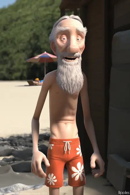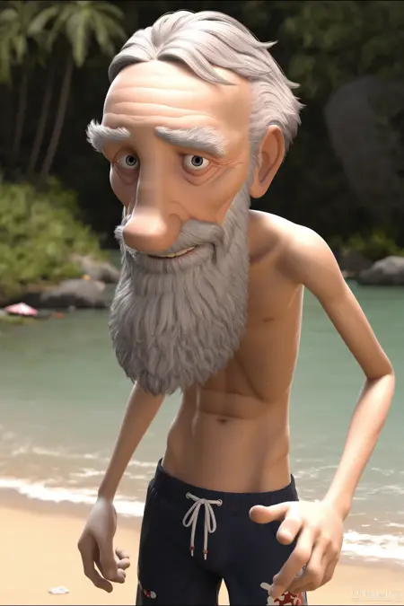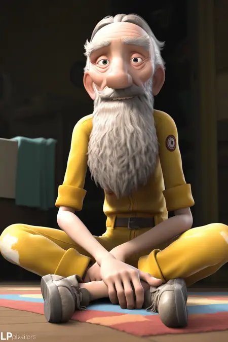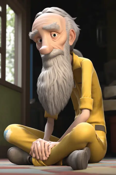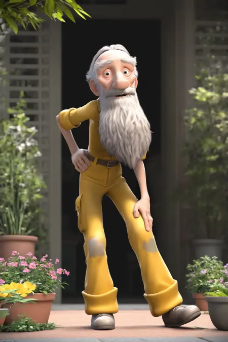 masterpiece, very awa, best quality,3d,cartoon,1boy,lpaviators2015,old man,greyhair,skinny,yellow jumpsuit,long beard