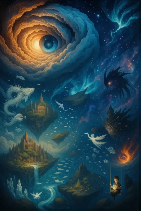 “DaliNihilo”的核心灵感源自纯真与宇宙浩瀚、孤独与无限可能性之间的深刻对比。其核心意象反复出现:一个孩子,有时身披阴影,有时双眼如遥远星系,平静地坐在一架违背常规物理法则的秋千上,悬于苍穹之中——那里,由凝固的云朵与被遗忘的梦境构成的巨型漂浮岛屿,缓缓穿行于闪烁寂静的天幕之下。该LoRA 捕捉了沉思之奇的本质,孩子既是观察者,也是这些超越寻常体验之景观的参与者。其美学源自浪漫主义崇高传统,个体直面无限,但通过超现实诗意与不可能几何的透镜重新构想。🎭