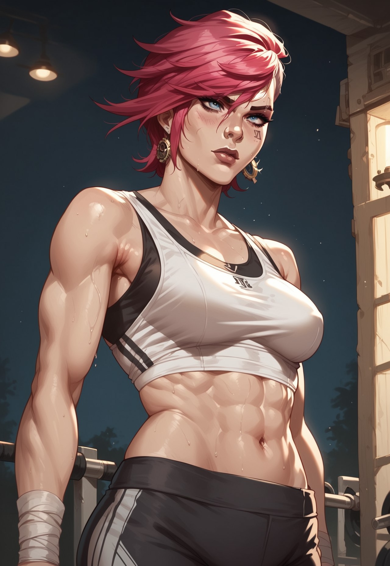 该模型描绘了《英雄联盟》宇宙中《双城之战》的Vi。