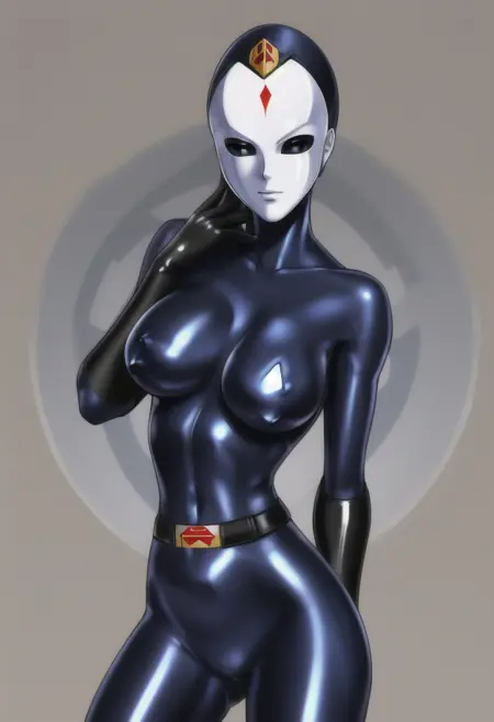 古いエロ漫画『ダイナレンジャー』に登場するゾファ・ソルジャーの戦闘員。マスクに関して非常に厳しいです。マスクあり(白いマスクとフードの両方)の画像には重み0.9–1.0、マスクなしの画像には重み0.8を使用してください。