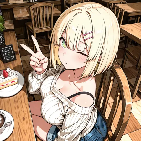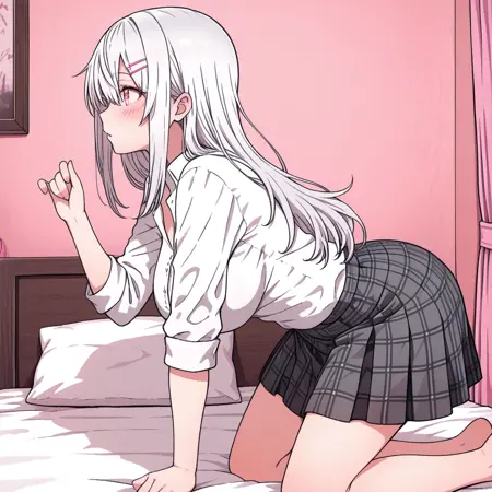 This LoRA can draw a cute anime girl with white long hair , pink eyes, pink hairpins and large breasts.