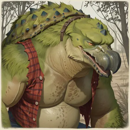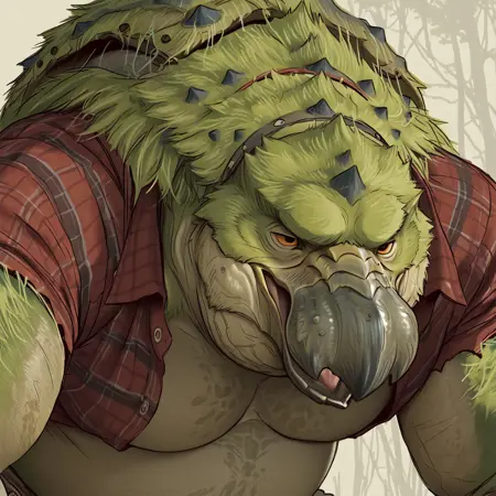 몬스터 헌터, 검은 오리 부리, 몸에 낀 이끼, 녹색 이끼, 아쿠아마린 색 몸, 등에 낀 이끼, 주황색 눈, 통통한, 배