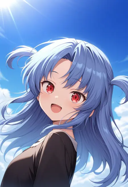 Trigger Words: kurobane alice, blue hair, long hair, red eyes