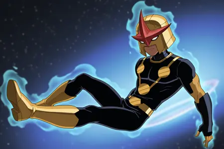 | 训练词汇 | Sam, 1boy, male, tanned skin, black hair, black eyebrows, green eyes, red t-shirt, black sleeveless, dark green pants, grey sneakers,已复制! Nova, 1boy, male, tanned skin, gold helmet, white eyes, black armor, gold buttons, black bracelets, gold belt, gold boots, glowing blue cosmic aura,已复制! NovaS3, 1boy, male, tanned skin, black helmet, white eyes, black armor, gold buttons, gold bracelets, gold belt, gold boots, glowing blue cosmic aura,已复制! |