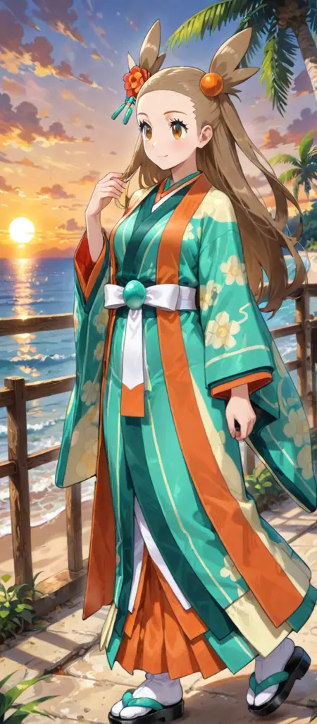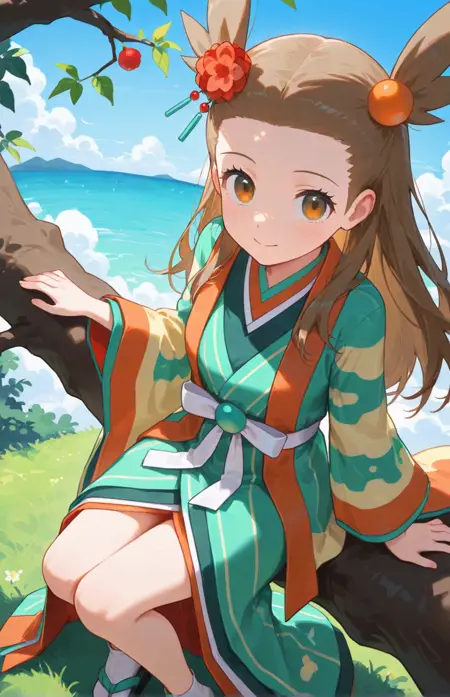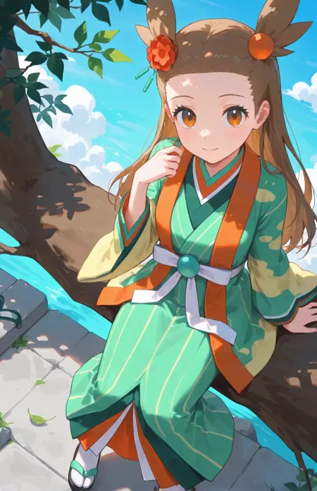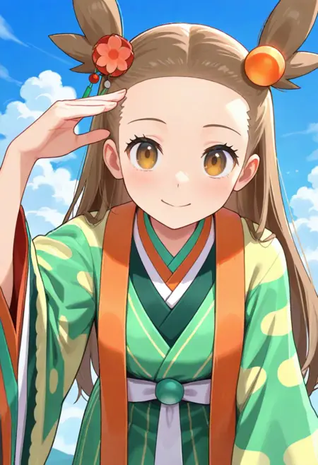 scjasmine, 성숙한, 자스민 (포켓몬), 갈색 머리카락, 갈색 눈, 긴 머리카락, 양쪽 올려매기, 머리 띠