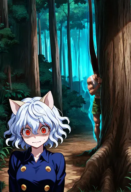 Trigger : gon_san, male focus, muscular male, black hair, tall hair, absurdly long hair, brown eyes, empty eyes,