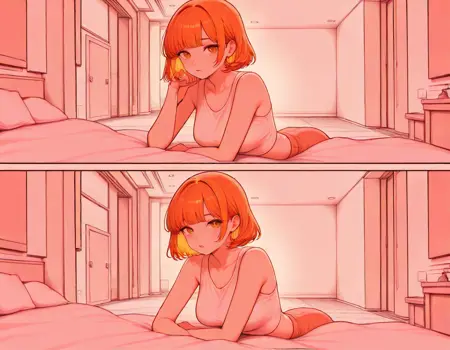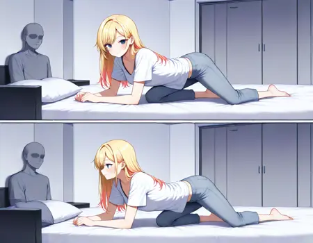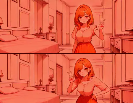close-up, faceless, fpcfpc, fixed-point camera, comic, 2koma,frame,indoors, bed room