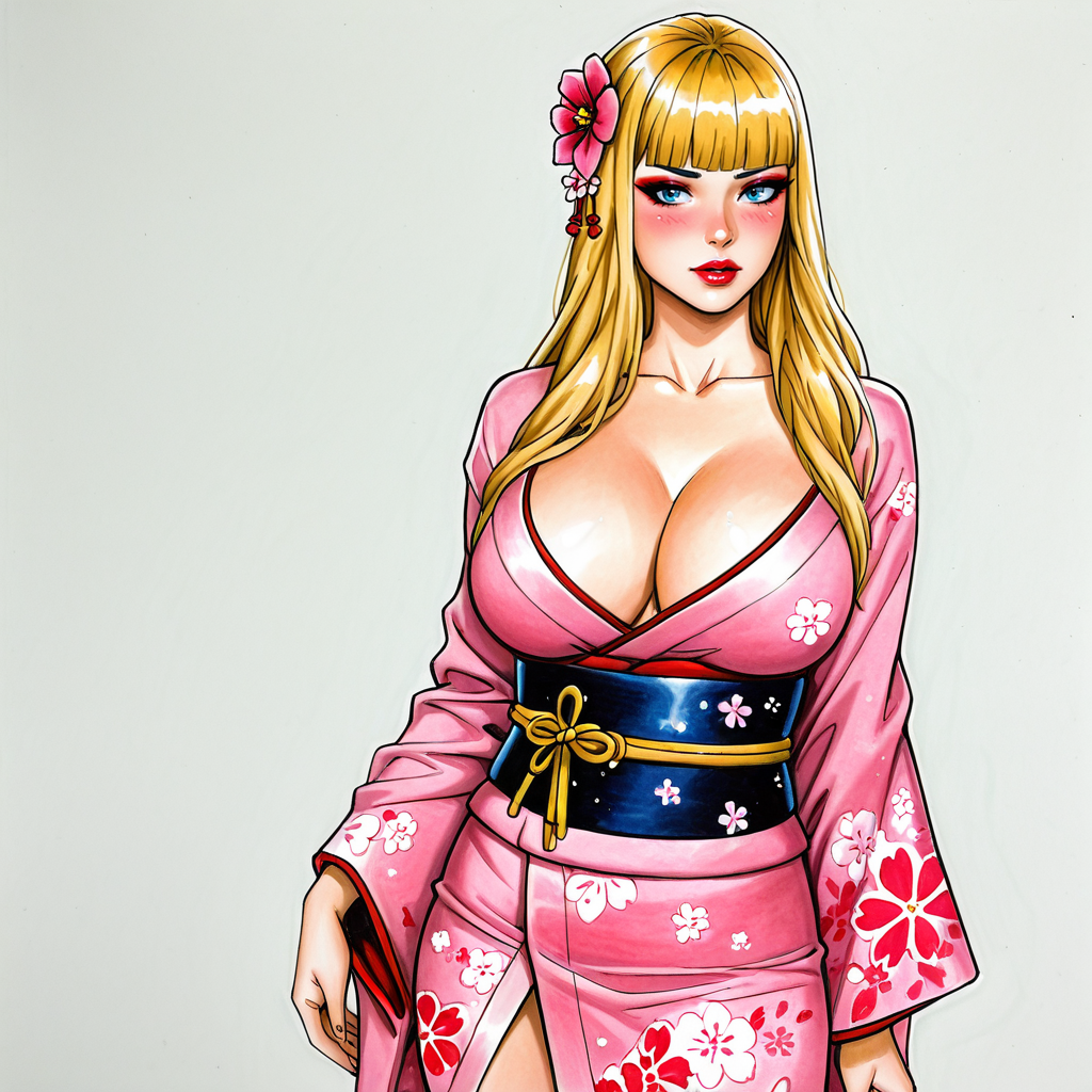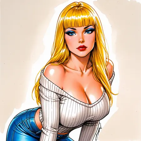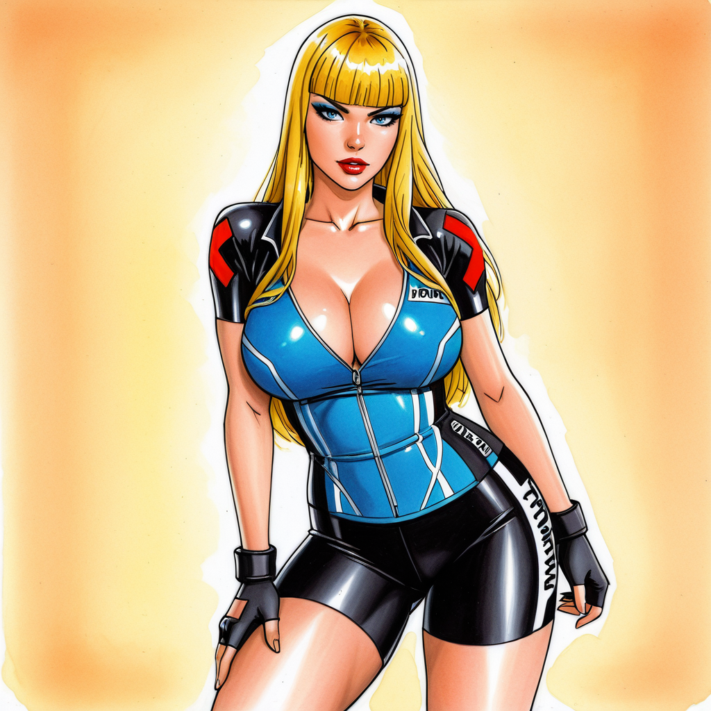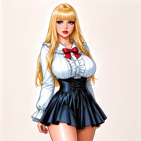 • Trigger with makeup: MagikMarvel, 1girl, large breasts, blonde hair, shoulder spikes, cleavage cutout, long hair, black gloves, navel, clothing cutout, midriff, makeup, belt, shoulder armor, lipstick, traditional media, marker (medium), pauldrons, crop top, eyeshadow, blue eyes, shoulder pads, lips, hands on hips, cowboy shot