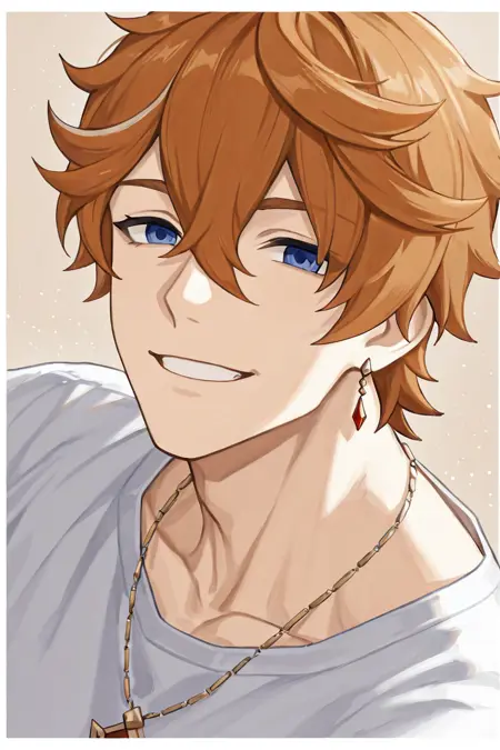 tartaglia (genshin impact)-12th_1male focus, blue_tartaglia (genshin impact)_eyes, orange_tartaglia (genshin impact)_hair, tartaglia (genshin impact)_jewelry