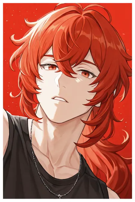 diluc (genshin impact)-4th_1male focus, diluc (genshin impact)-4th_1male focus, red_diluc (genshin impact)_hair, red_diluc (genshin impact)_eyes
