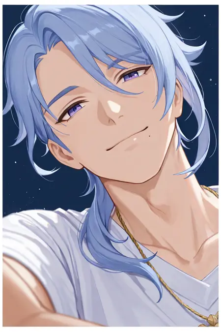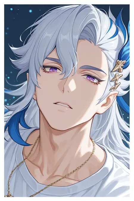 neuvillette (genshin impact)-10th_1male focus, purple_neuvillette (genshin impact)_eyes with white slit pupils, white-blue_neuvillette (genshin impact)_hair, neuvillette (genshin impact)_hair ornament