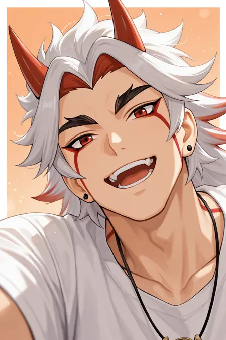 arataki itto-7th_1male with oni horns focus, red_arataki itto_eyes, white-red_arataki itto_hair, red_arataki itto_facepaint, red_arataki itto_horns,