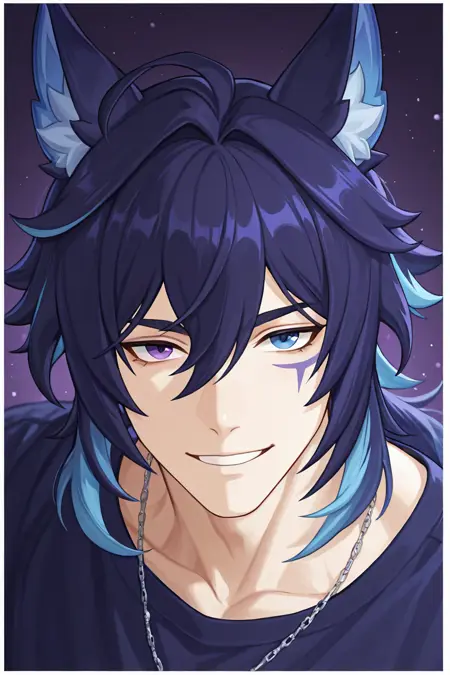 ororon (genshin impact)-11th_1male with animal ears focus, purple-blue_ororon (genshin impact)_heterochromia, blue_ororon (genshin impact)_hair, ororon (genshin impact)_single facial mark