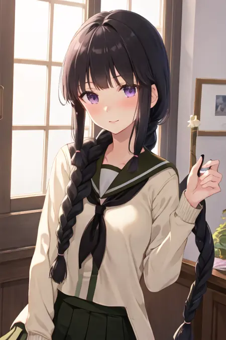 트리거 단어는 kitakami_kantaicollection이며, 권장 태그는 best quality, masterpiece, highres, solo, {kitakami_kantaicollection:1.15}, long_hair, black_hair, braid, bangs, single_braid, blunt_bangs, sidelocks, serafuku, purple_eyes입니다.