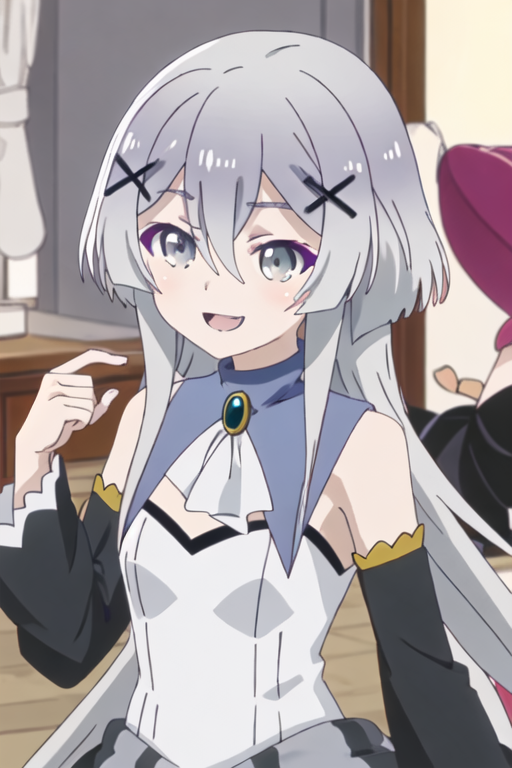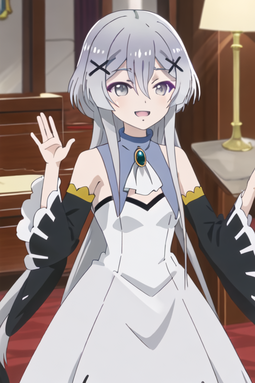 触发词为 misaana_farrengram_kumakumakumabear,推荐标签为:best quality, masterpiece, highres, solo, {misaana_farrengram_kumakumakumabear:1.15}, hair_ornament, x_hair_ornament, long_hair, grey_hair, grey_eyes, bangs, hair_between_eyes, smile, open_mouth