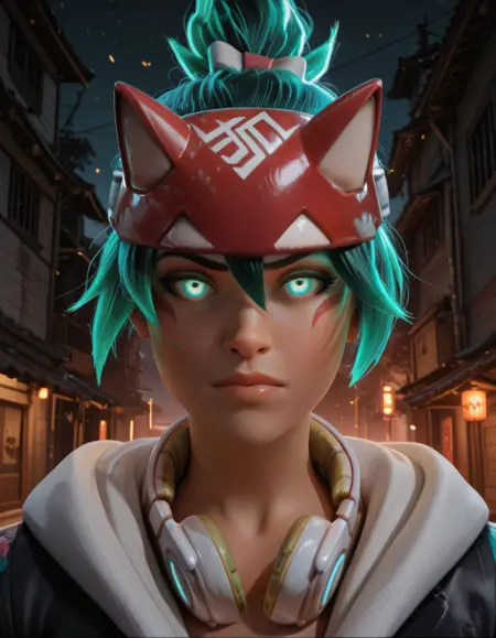 キツネのマスク、またはヘッドバンド - ときどきキツネの耳が生成されるため、これらをNegに追加して削除 - その他のヘアアクセサリーのプロンプトもNegに追加して発生確率を減らす