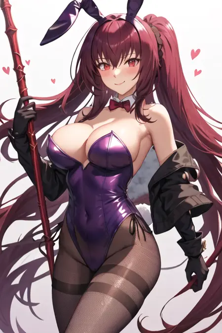 トリガー単語はscathach_fgo、おすすめタグはbest quality, masterpiece, highres, solo, {scathach_fgo:1.15}, long_hair, purple_hair, red_eyes, breasts, large_breasts, bangs, hair_between_eyes, hair_intakesです。