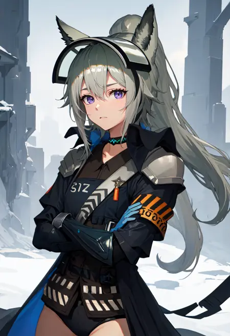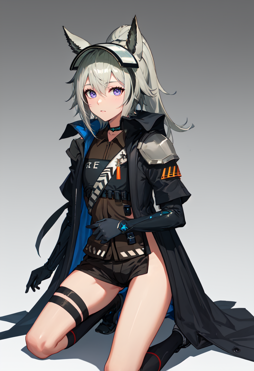 トリガーワードはgrani_arknightsで、削除されたタグはanimal_ears, grey_hair, horse_ears, long_hair, ponytail, hair_between_eyes, purple_eyes, horse_girl, visor_cap, tail, horse_tailです。ある時期に特定の特徴(例:髪の色)が不安定な場合、これらをプロンプトに追加してください。