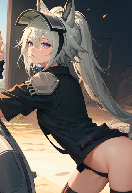 触发词为 grani_arknights,经过修剪的标签为 animal_ears, grey_hair, horse_ears, long_hair, ponytail, hair_between_eyes, purple_eyes, horse_girl, visor_cap, tail, horse_tail。当某些特征(如发色)在某些情况下不够稳定时,您可将这些标签添加到提示词中。